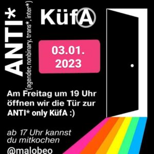 Erfahren Sie mehr »03.02.: ANTI* KüfA (agender, non-binary, trans*, inter*)