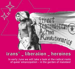 trans* _ liberation _ heroines #2 Eine Veranstaltungsreihe des malobeos in Kooperation mit der Queer Pride DD (insta & fb). Zeitplan 18:30 Lesekreis: Queere Streitschriften 20:30 Doku über Heldinnen des Stonewall-Riots Info Die Zines stellen wir auf Englisch und auf Deutsch zur Verfügung. Gleichso ist die Diskussion in beiden Sprachen möglich. Aufgrund der COVID-19 ist die Teilnehmer*innenzahl für die Dokumentarfilmvorführung begrenzt. Bitte meldet euch unter malobeo.events systemli org an. Für Barrierefreiheit checkt hier. Über die Serie 'trans* _ liberation _…