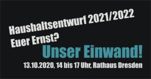 Erfahren Sie mehr »13.10. – DEMO Haushalt 2021/2022: euer Ernst? Unser Einwand!