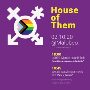 Event by House of Them We invite you on the 28th of October, for a cozy movie night at the Malobeo and a chance to get to know and connect with other queer people and BIPOC. Before the movie begins, we will be shortly presenting a talk about mental health care in queer and BIPOC communities, a very important aspect in our lives. Due to corona regulations, we encourage you to message us, to insure you available spots. Location: Malobeo…