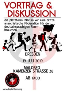 Erfahren Sie mehr »19.07. die plattform: Vortrag und Diskussion zu einer 3. anarchistischen Förderation