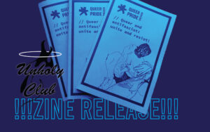 ZINE RELEASE @UNHOLY CLUB (Queer Pride Dresden Evening for queers & allies / Abend für Queers & Allies 💕) 📆 30.08.24, 17:00-22:00 📍malobeo, Kamenzer Straße 38, 01099 Dresden Hooray, ihr könnt euch ein neues Queer Pride DD Zine besorgen: Queer & Antifaschistisch - Unite and Resist! Das Heft enthält nicht nur Redebeiträge von Queer Pride Dresden, sondern auch von anderen Demonstrationen, Kundgebungen und hat Beiträge von verschiedenen anti-autoritären Gruppen aus Dresden und Umgebung. Außerdem im Zine: Verschiedene queere Künstler*innen aus…