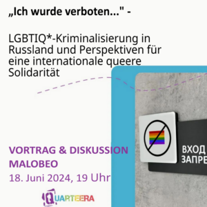 Erfahren Sie mehr »18.06.: Quarteera: „Ich wurde verboten…“ – LGBTIQ*-Kriminalisierung in Russland und Perspektiven für eine internationale queere Solidarität